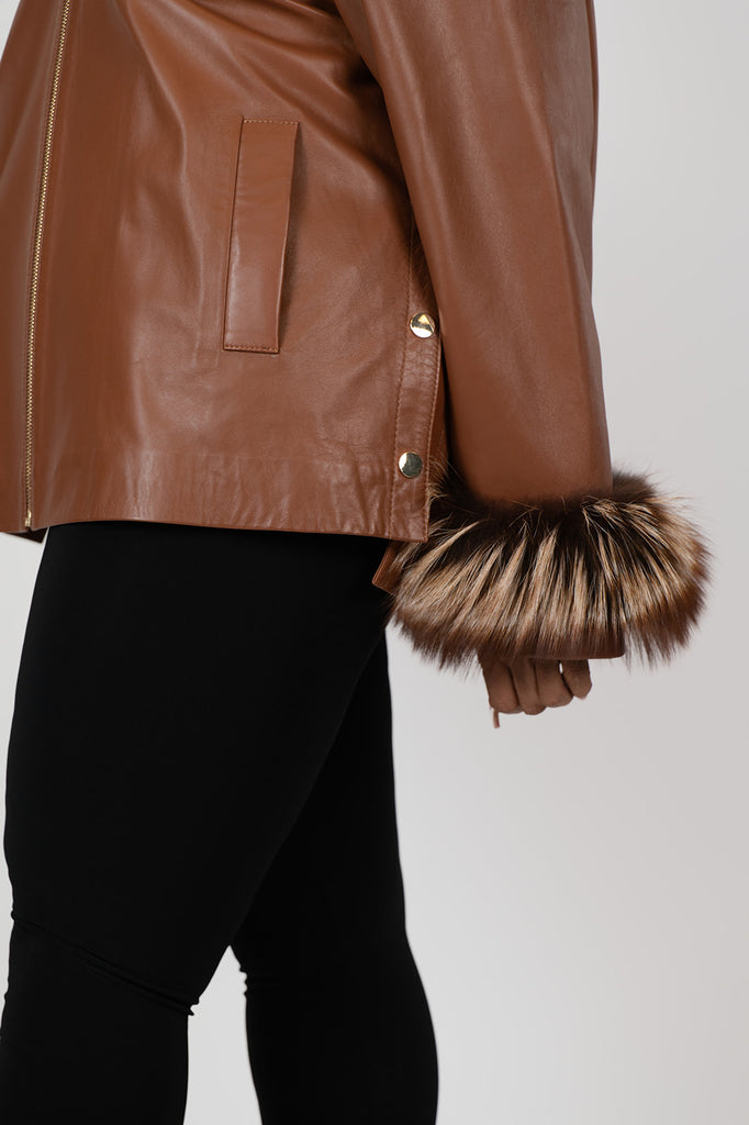 Fashioned in buttery soft leather with stunning crystal fox trim at the collar and hood, this stylish zip-front poncho jacket is a statement style you'll want to wear every day!