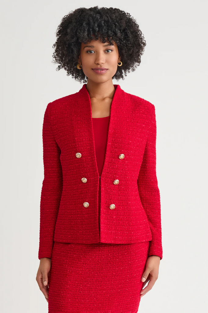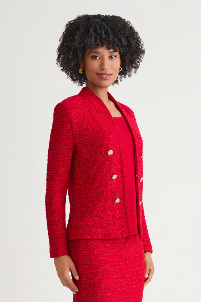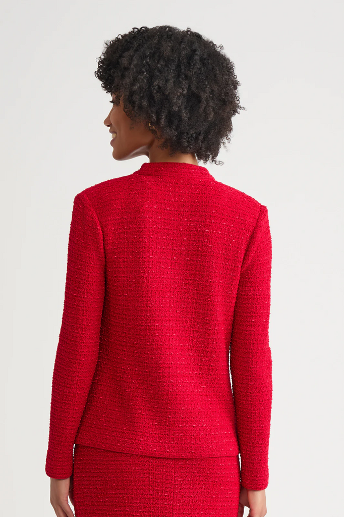 Ming Wang Tailored Tonal Eyelash Tweed Knit Jacket - Holiday Red