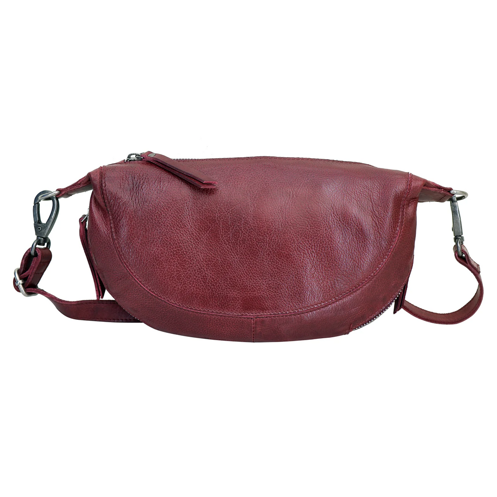 Compact and hands free, this slim half moon bag is ready for anything. Wear it as a sling or crossbody and enjoy how it hugs close while keeping you moving. The top zip main compartment, twin side zips for your phone and keys, and built-in card slots make organization easy. Crafted from full-grain leather, it transitions effortlessly from day to night without any extra bulk.
