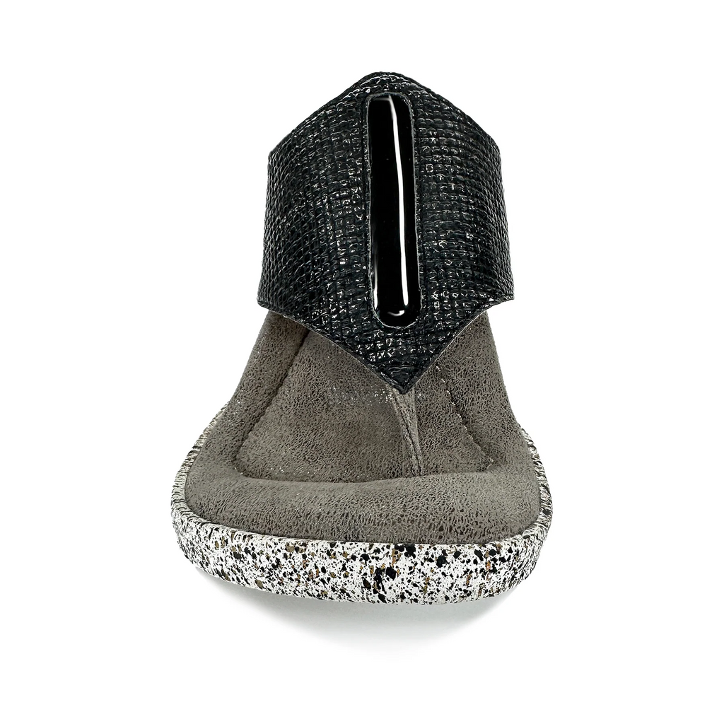 Elevate your footwear collection with the Iris 2 sandals designed for those who seek both fashion and comfort. These stylish low-wedge sandals feature a reversible dual-tone design, seamlessly switching from classic black to crisp white for versatile styling. The sleek upper is adorned with a striking metallic center detail, adding a modern edge to your look. Effortlessly transform your outfit by flipping between two timeless colors to suit any occasion. Crafted for all-day wear, the Iris 2 Sandals feature a cushioned footbed and a durable sole, providing comfort and stability on various surfaces—perfect for casual and semi-casual settings.