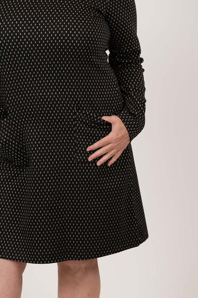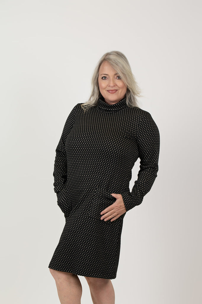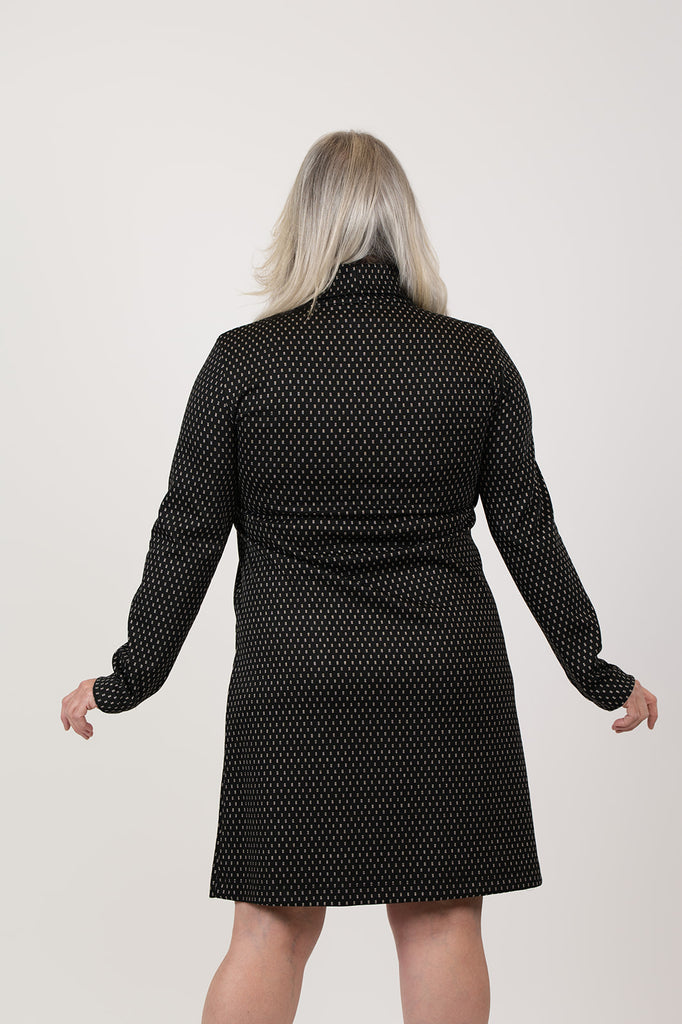 Pure Essence Dotted Jacquard Cowl Neck Tunic Dress - Black/Ivory