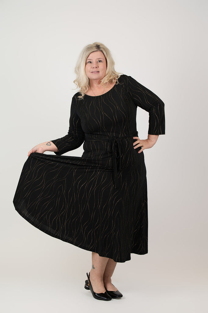 Steven Guy Embellished Jersey Knit Sash Belt Midi Dress - Black/Gold