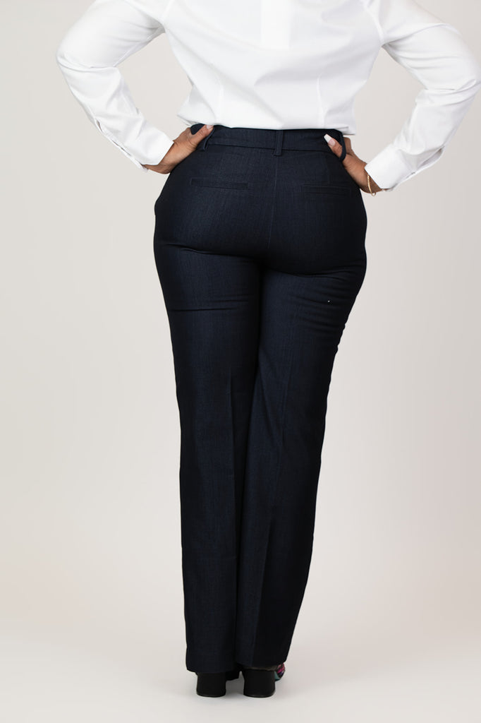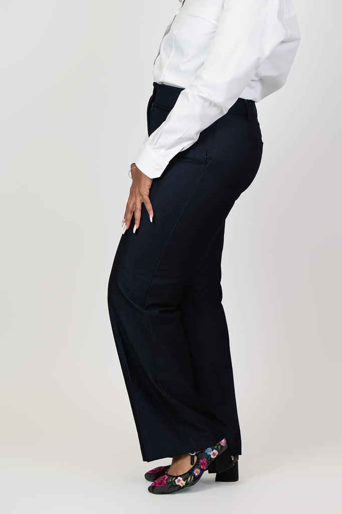 A modern take on a timeless classic, this elevated pant is fashioned in a sleek "sharkskin" denim fabrication. Pair it with the matching blazer for a chic suited look!