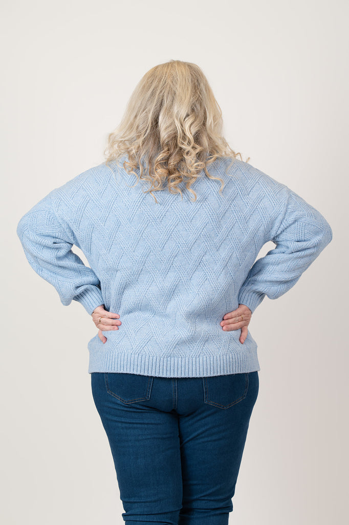 Steven Guy Diamond Knit Cowl Neck Drop Shoulder Sweater - Chambray