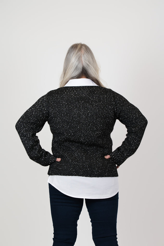 - Tweedy sweater knit body